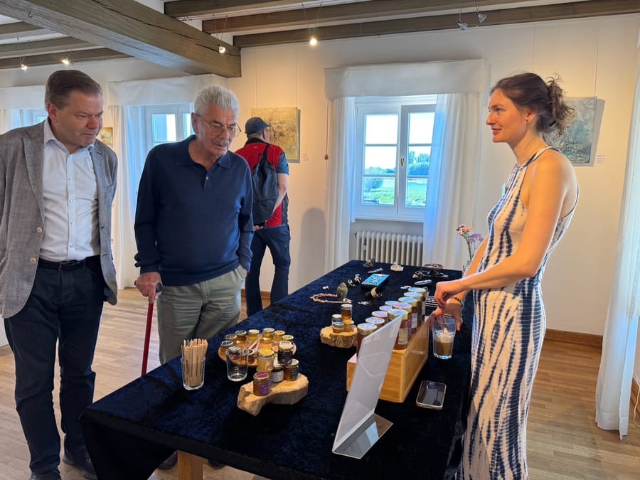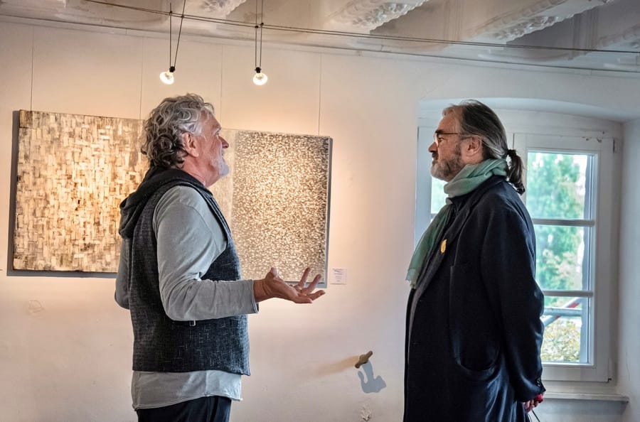 Dieter Laue ‘s works are a play of the elements. Water meets self-produced colors made from pigments, minerals and earth – a lively interplay of energy and matter. Flowing structures are created that are reminiscent of rivers, landscapes or mysterious organisms. Laue intervenes to direct, tilts, turns and guides the water until a conscious composition is formed from the seemingly random. His painting always remains in dialog with nature: powerful, organic, full of depth. Anyone who engages with these pictures will not only discover fascinating forms, but also a glimpse of “what holds the world together at its core.”